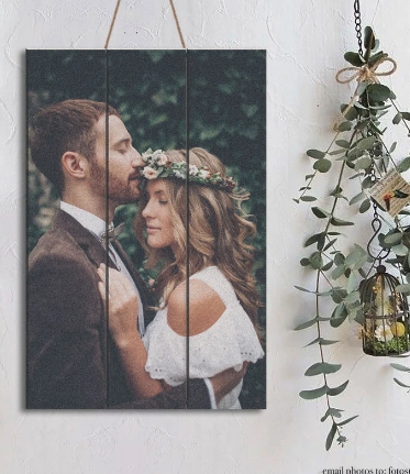 For a more rustic look, get your photo printed on a wooden backdrop!