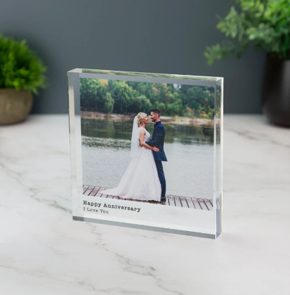 Get a photo memorialized in a glass stand to give the gift a little extra something!