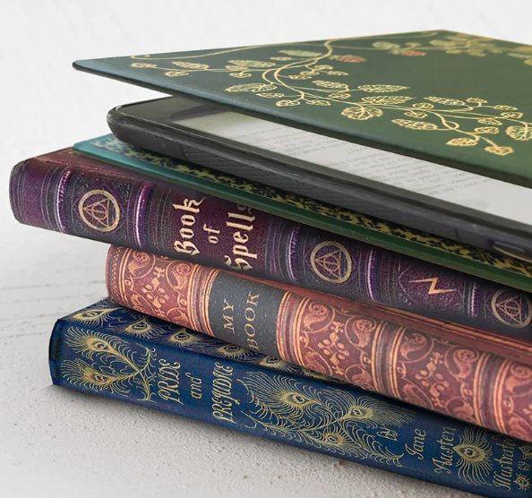 These cases are gorgeous! They fit on any kindle, and they even have ones inspired by popular reads like Harry Potter and Pride & Prejudice!
