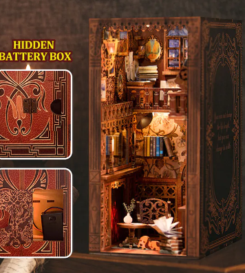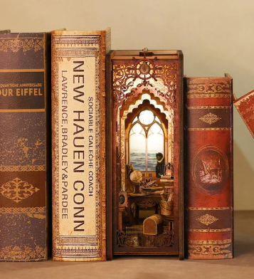 Book Nooks might sound new to some, but they’re a fantastic creation for all book lovers! These particular ones come in kits for you to put together, then put them between your books for some light and whimsical decoration!