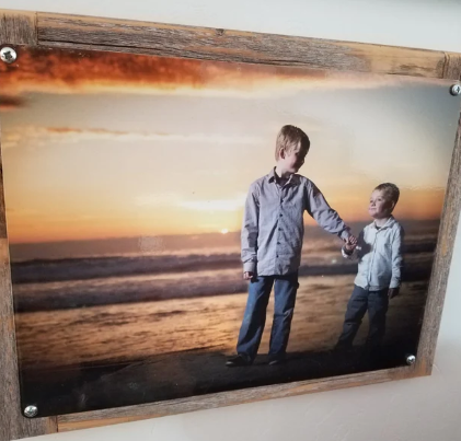 For those who like the industrial look in their decor! A metal photo on a wood backdrop.