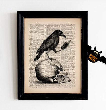 Any good office, library, or reading space in general needs some good art! What better than something with ravens and books?